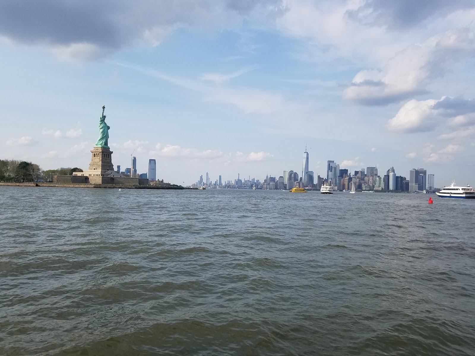 We have spent the last 2 days at the Liberty Landing Marina in Jersey City, right across the Hudson River from Manhatten and the World Trade Center. We anchored Friday night just off the Staue of Liberty and pulled into the marina mid morning Saturday, June 1. It's a huge marina with 500+ slips, and gave us excellent access to the downtown New York area and Ellis Island and the Statue of Liberty. There was a ferry just a hundred yards from our slip that takes people across the Hudson to downtown every 30 minutes, so on Saturday afternoon we did just that. I wanted to see the 9-11 Memorial, and then we found a number of other places to see, St. Paul's Chapel, which dates to the 1700's, and George Washington prayed after bing elected, and Trinity Church where Andrew Hamiltonand Robert Fulton are buried. Then found the National Archives and a Smithsonian exhibit on the native population of the western hemisphere. At the end of the afternoon went looking for a beer and I really wanted a cheese steak sandwich, so we walked into a pub. Cindy noted it was all men and no women and that they looked at her funny and I probably wouldn't want to be there, so we found another bar with a good beer, bad sandwich and worse service. Yesterday I did a little work on our propane line which developed a very slow leak. Biked to an Ace Hardware through a bad New Jersey neighborhood to an Ace Hardware that had no hardware. Unbelievable. So I fixed it for now and will get the fittings I need down the line. In the afternoon we took the ferry to Ellis Island and the Statue of Liberty which was just awesome. In the evening we got together with 8 other boats that are doing the loop for a little happy hour and today are heading up the Hudson.